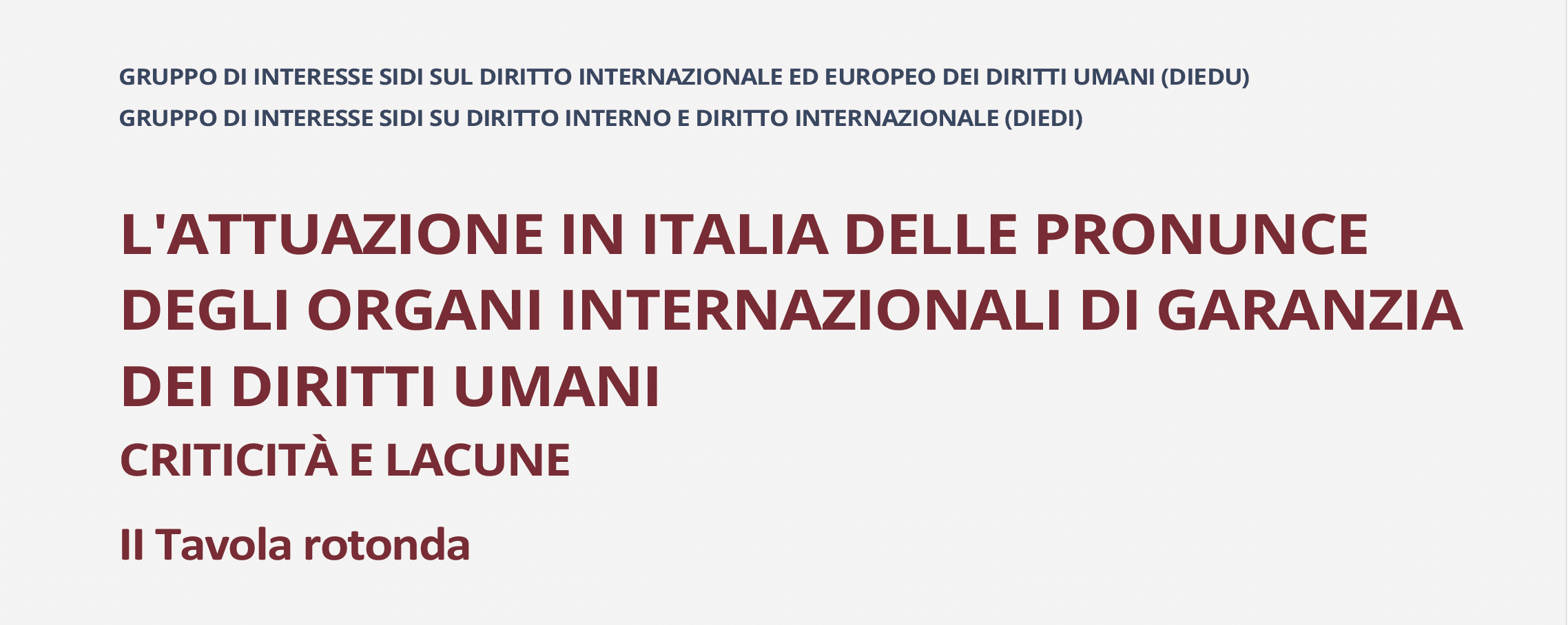 Lunedì 6 maggio 2019, dalle ore 14 alle ore 17, nell'Aula della Biblioteca di Diritto pubblico dell'Università di Parma, si è tenuta la seconda Tavola rotonda sul tema de "L'attuazione in Italia delle pronunce degli organi internazionali di garanzia dei diritti umani: criticità e lacune".