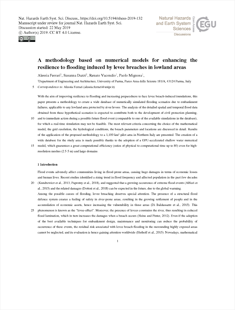 With the aim of improving resilience to flooding and increasing preparedness to face levee-breach-induced inundations, this paper presents a methodology for creating a wide database of numerically simulated flooding scenarios due to embankment failures, applicable to any lowland area protected by river levees. The analysis of the detailed spatial and temporal flood data obtained from these hypothetical scenarios is expected to contribute both to the development of civil protection planning and to immediate actions during a possible future flood event (comparable to one of the available simulations in the database) for which real-time modelling may not be feasible.
