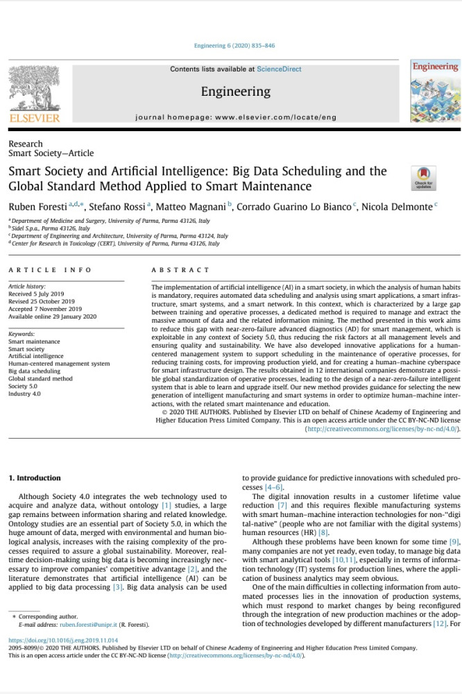 The implementation of artificial intelligence (AI) in a smart society, in which the analysis of human habits is mandatory, requires automated data scheduling and analysis using smart applications, a smart infrastructure, smart systems, and a smart network. In this context, which is characterized by a large gap between training and operative processes, a dedicated method is required to manage and extract the massive amount of data and the related information mining. The method presented in this work aims to reduce this gap with near-zero-failure advanced diagnostics (AD) for smart management, which is exploitable in any context of Society 5.0, thus reducing the risk factors at all management levels and ensuring quality and sustainability.